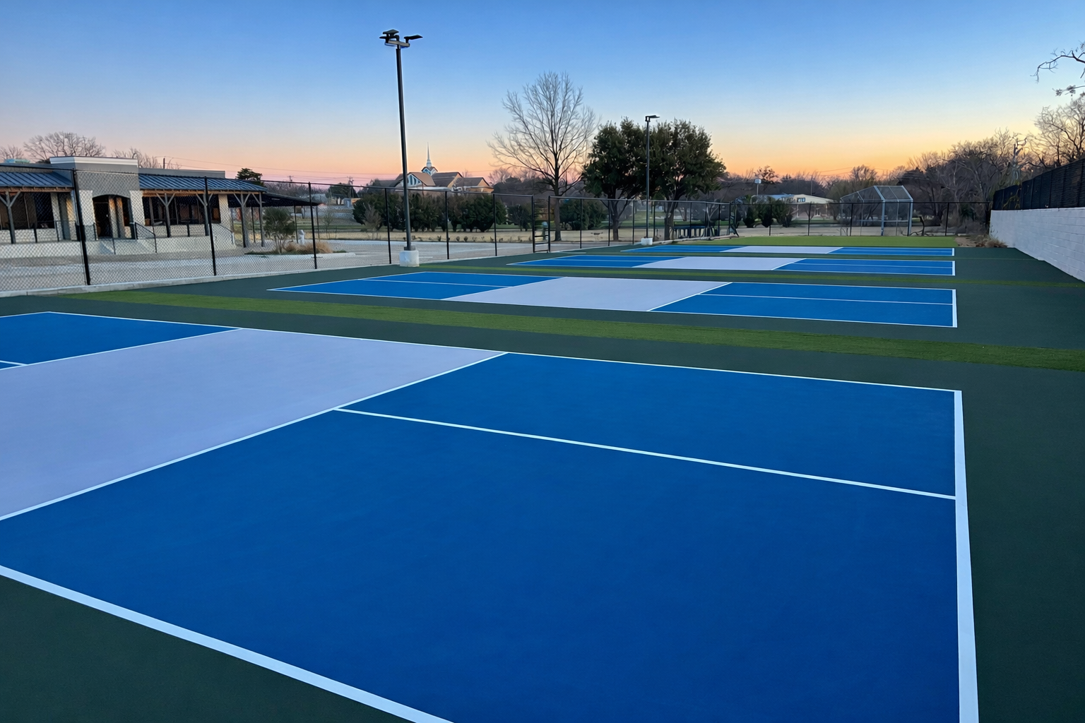 Four pickleball courts providing entertainment component for guests and league play